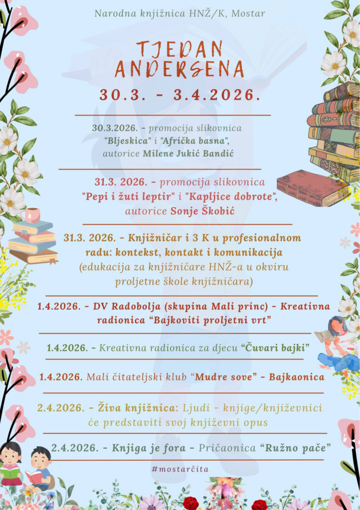 Sve vas pozivamo na zanimljiv i interaktivan program “Žive knjižnice” te sudjelovanje u ostalim aktivnostima u Narodnoj knjižnici HNŽ Mostar.